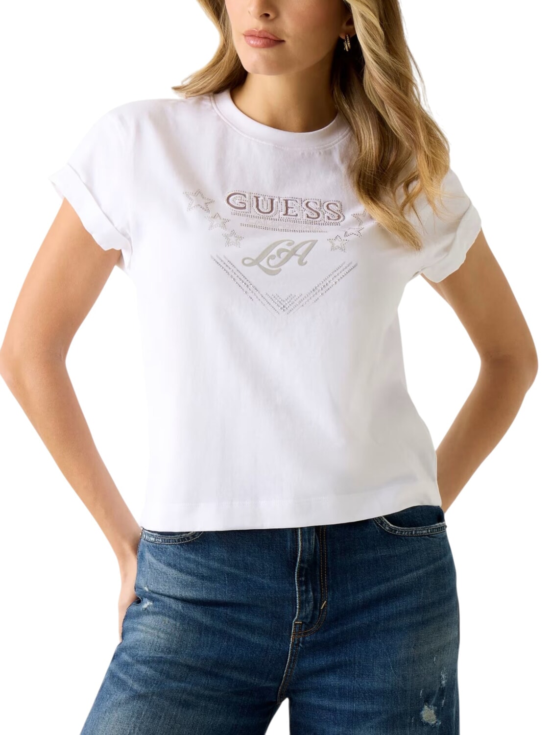 STARS T-shirt con stampa e borchiette