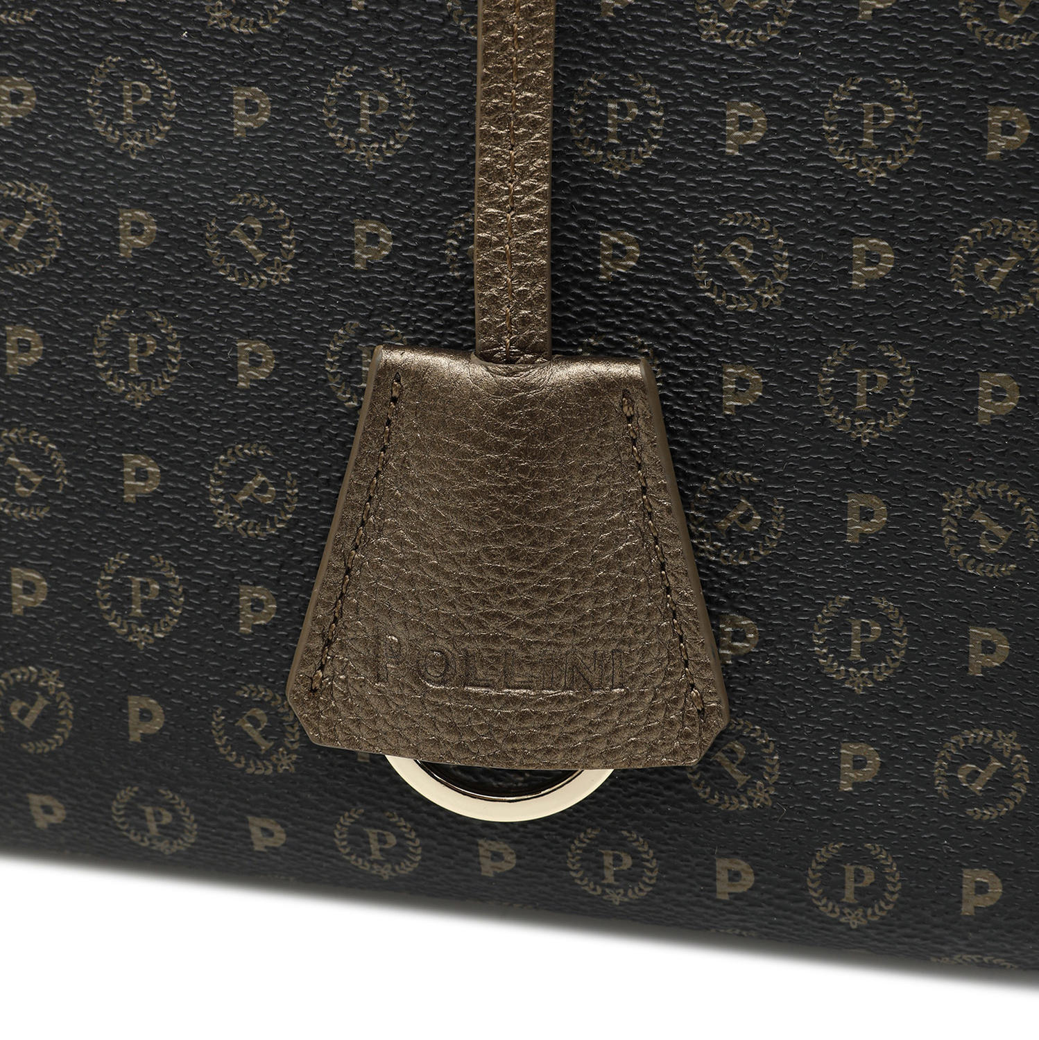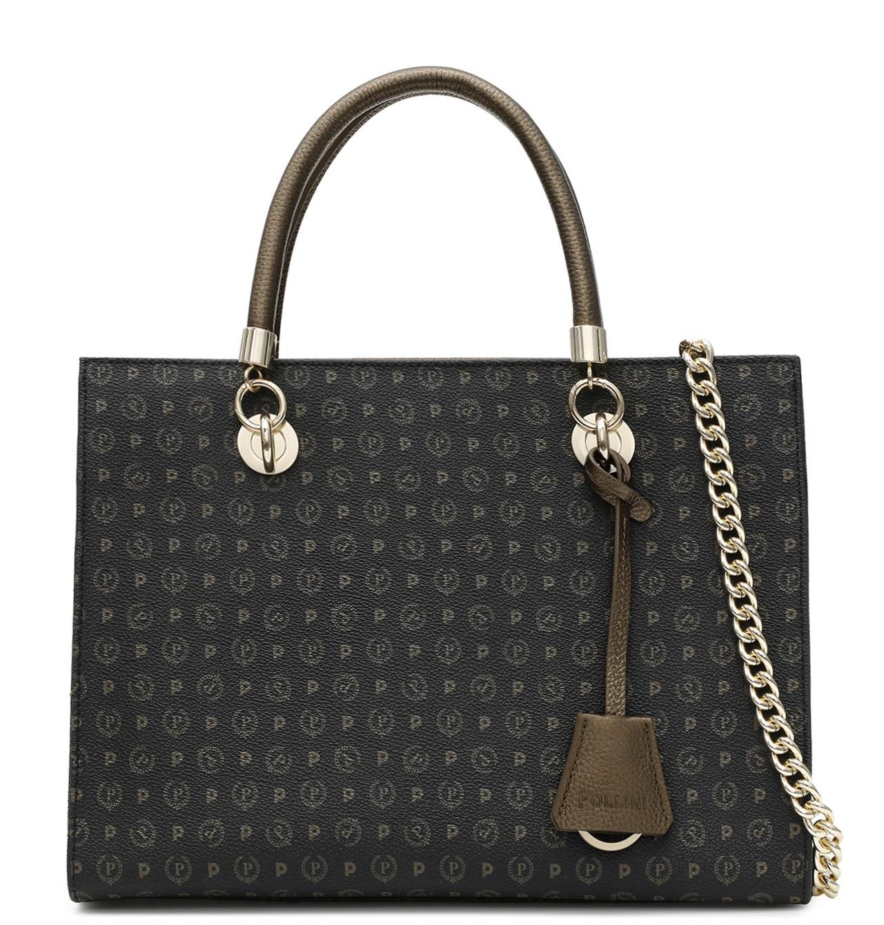 - Borsa semirigida in pvc con dettagli in pelle di vitello